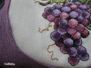 Готова вишивка підбором по схемі Dimensions 06888 (Grapes on Vine) лежала в мене ще з минулого літа. На той момент це було перше знайомство з рівноміркою (Murano Lugana 32 кремова), а також з нитками СХС.